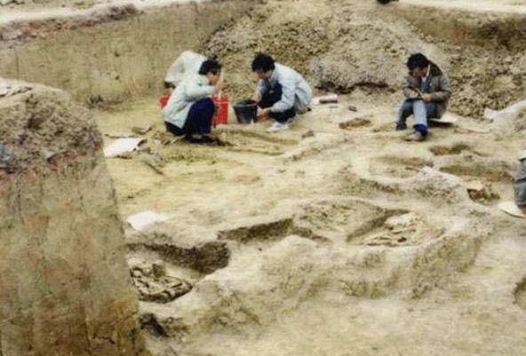 龍一村貝丘遺址在鼎湖區(qū)龍一村,離鼎湖山景區(qū)2.5公里,于1984年被發(fā)現(xiàn),遺址年代距今約5000年左右,有新石器時(shí)代墓葬27處,出土的器物有石鑄、陶器和骨器。陶器造形簡(jiǎn)單,有夾沙和泥質(zhì)二種,有些泥質(zhì)陶片先施白色陶衣,再給上儲(chǔ)紅色勾連紋圖案,并配有接孔和曲線刻劃紋;骨器中的骨笛是廣東省新石器時(shí)代遺址中的首次發(fā)現(xiàn)。墓葬都是豎穴土坑墓,葬式以側(cè)身屈肢葬為主,還有雙手反捆俯身屈肢葬和蹲踞葬。