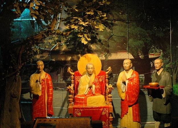 新辟一建筑作六祖惠能生平事跡陳列館,館內(nèi)采用舞臺場景塑像的形式,講述六祖從新興誕生,到湖北求佛受衣缽,經(jīng)肇慶懷集、四會隱藏,往廣州出家,到曹溪弘法,經(jīng)端州插梅成蔭,回新州圓寂的過程,版權(quán)所有山東聊城聊之旅國際旅行社有限公司,轉(zhuǎn)載必究!每一個場景都栩栩如生。