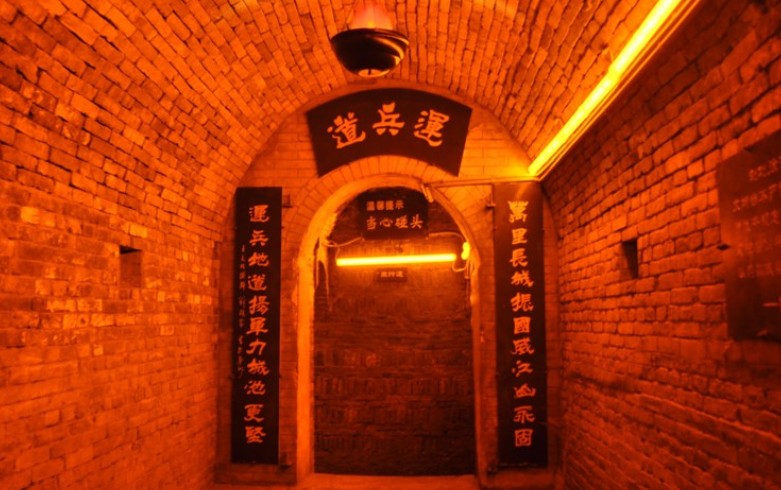 亳州古城內(nèi)的曹操運(yùn)兵道,位于亳州市老城區(qū)地下,以大隅首為中心,向東、西、南、北四面延伸,直至郊外。運(yùn)兵道始建于東漢末年,是魏武帝曹操為其軍事需要,專門修筑的地下軍事戰(zhàn)道,因最初用于運(yùn)送士兵,故稱“曹操運(yùn)兵道”。唐宋時(shí)期多次修葺,仍作為軍事戰(zhàn)道使用。南宋嘉熙四年(1240年),黃河決口,亳州城被淹,運(yùn)兵道被灌淤塞,自此深埋地下700余年未被發(fā)現(xiàn)。