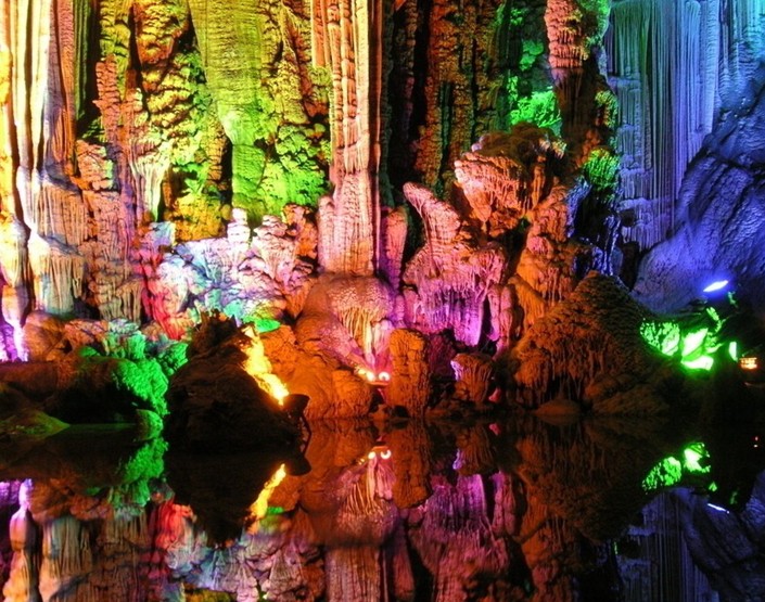 武隆是一個(gè)山清水秀的地方。其芙蓉洞也是國家5a級(jí)景區(qū),在芙蓉江旁。是1993年發(fā)現(xiàn),1994年對外開放的。它是世界上較大的溶洞群之一,洞內(nèi)全長2700米,幾乎包括了鐘乳石所有沉積類型。洞內(nèi)的“生命之源”“珊瑚瑤池”“巨幕飛爆”“石花之王”“犬牙晶花池”并稱為芙蓉洞“五絕”被世界洞穴專家譽(yù)為“斑斕輝煌的地下藝術(shù)宮殿”。特別是珊瑚瑤池系由水池中色澤淺黃的方解石晶花和浮筏石筍構(gòu)成,池水面積約30平方米,水深0.5—1.3米,水質(zhì)清沏透底,珊瑚瑤池以其面積最大的水下晶花為世所罕見,生長在晶花浮筏上的兩根翠玉般的石筍,尤如瑤池中的兩位妙齡仙女,更是洞中之珍品,舉世奇絕,而珊瑚池上的整個(gè)上部空間,更為琳瑯滿目的鵝管鐘乳石,石幔、石花和卷曲石等各類沉積物所布滿,顯得無比豪華富貴是洞號(hào)稱天下第一洞的標(biāo)志性景區(qū),據(jù)說此景全國獨(dú)一無二,世界上只有法國克拉姆斯洞穴才有,但它的水深和面積沒有芙蓉洞的大。真可謂“此景只應(yīng)天上有,人間那得幾回". 芙蓉洞是一個(gè)大型石灰?guī)r洞穴,形成于第四紀(jì)更新世(大約100多萬年前),發(fā)育在古老的寒武系白云質(zhì)灰?guī)r中。洞內(nèi)深部穩(wěn)定氣溫為16.1度。芙蓉洞主洞全長2500米,游覽道1860米,底寬12—15米以上,最寬69.5米;洞高一般8—25米,最高48.3米;洞底總面積37000平方米,其中輝煌大廳面積在1000平方米以上。整個(gè)芙蓉洞的最大靜態(tài)和客容量為185000人。 洞內(nèi)各類次生化學(xué)沉積形態(tài)(Speleothems,即鐘乳石類,芙蓉洞中有碳酸鹽巖和硫酸鹽巖兩類化學(xué)類型)琳瑯滿目,豐富多彩,幾乎包括鐘乳石所有沉積類型,達(dá)70多種。如:石鐘乳、石筍、石柱、石幕(小的為石幔)、石瀑布、石旗、石帶、石盾、石葡萄、珊瑚晶花等。其礦物組成主要是方解石和石膏,也有文石、水菱鎂石。其中大多數(shù)種類存在數(shù)量之眾多,形態(tài)(有針狀、絲發(fā)狀、絲縷狀、發(fā)簪狀等)之完美,質(zhì)地分布之廣泛,在國內(nèi)目前的發(fā)現(xiàn)中,多屬絕無僅有,而某些類型,更為國內(nèi)罕見,世界稀有。