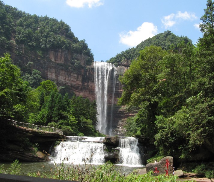 四面山景區(qū)景觀以原始森林為基調(diào),眾多溪流、湖泊、瀑布點(diǎn)染于蒼山綠樹(shù)之間,丹霞地貌豐富其自然色彩,目不暇接的動(dòng)、植物更為景區(qū)增添盎然生機(jī)。四面山的瀑布最為壯觀。有大小瀑布100多處。瀑布傾瀉激蕩,掀起滿天煙霧,轟然鳴響,數(shù)里之外也能感受到其威勢(shì)。望鄉(xiāng)臺(tái)瀑布高152米,寬40米,居我國(guó)高瀑之首;水口寺瀑布高94米,懸掛在一個(gè)天然洞穴之下,景象奇特;鴛鴦瀑布比翼齊飛,撩人遐思。