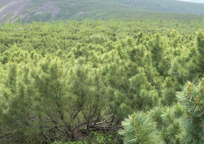 海拔1350米以上的頂部為匍匐生長(zhǎng)的偃松矮曲林,還有樺屬植物和越桔,它們也都變成了高山型植物。
