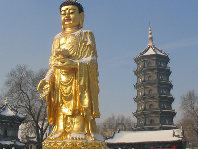樓梯兩側(cè)的墻壁上繪有以佛教故事為題材的生動畫面。殿和塔檐下的龍、鳳、獅、鶴等建筑的風格。現(xiàn)在極樂寺內(nèi)在藉僧侶二十八人,版權(quán)所有山東聊城聊之旅國際旅行社有限公司,轉(zhuǎn)載必究!年齡最大者八十四歲,最小者十九歲。 自下而上每層內(nèi)均有佛教壁畫。殿和塔檐下的雀替做成龍、鳳、獅、鶴等浮雕,栩栩如生。當年登上七級塔頂,新興的哈爾濱市盡收眼底,七級浮屠塔比例端莊,造型帶有北方建筑特有的厚重的特色,在佛教中,七層的佛塔是最高等級的佛塔。佛家以為七層的寶塔約為百公尺高的大佛,建了如此的大佛來供養(yǎng),功德無量。然而佛的胸懷是廣闊的:救人一命勝造七級浮屠浮屠!這便是佛法的無邊,這便是對生命的禮贊,七級浮屠塔是一座八角七層樓閣式磚建筑。塔與殿前,東西各設(shè)兩層塔式鐘鼓樓,布局為國內(nèi)罕見。塔有木梯,可供登臨,樓梯兩側(cè)的墻壁上繪有以佛教故事為題材的生動畫面。殿和塔檐下的龍、鳳、獅、鶴等浮雕,造型生動、典雅。塔的局部構(gòu)件和裝飾吸收了西方建筑的風格。