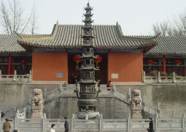 梁武帝時又在臺上建有鐵佛寺。唐大歷年間又重修擴建,定名明教院,至明代改為明教寺。后毀于戰(zhàn)火。明教寺,聳立臺上,雄偉壯觀,乃清光緒十一年太平天國遺老袁宏謨云游募化,按原樣重建而得。明教寺現(xiàn)為全國重點寺廟,由佛殿、藏經(jīng)閣、西廂院三部分組成。殿分正殿和后殿,有佛像三十多尊。大雄寶殿飛檐翹角,風(fēng)鈴叮鐺,殿脊高聳一巨大錫葫蘆,銀光閃耀,直刺云天,顯示了我國佛教寺院威嚴莊重得建筑特色。寺內(nèi)鐘鼓齊鳴,梵音繚繞,充滿了神奇得宗教色彩。