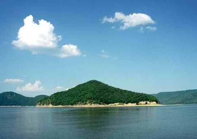 位于鏡泊湖的南部。駛過珍珠門,遙望湖之兩岸,有一山巒兀立湖中,它高出水面七十八米,這就是“道士山”,實(shí)際上是一座島嶼。它左右各有一山環(huán)抱,猶如“二龍戲珠”。