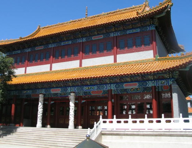 大乘寺又稱大佛寺。位于齊齊哈爾市鐵鋒區(qū)木海街與民航路交叉口、西滿革命烈士陵園南側。建于1943年,占地面積3.1萬平方米。坐北朝南,有前后兩座大殿。廟門向南,正中一座大門樓。大殿及門樓皆為黃釉琉璃瓦覆蓋,院墻按八卦建造,廟宇采用斗拱式建筑,玻璃瓦覆蓋,大雄寶殿脊中央的麒麟背馱一座玲瓏寶塔經幌,與綠色琉璃瓦組成的“大乘寺”三個大字交相輝映,具有濃郁的宗教色彩。