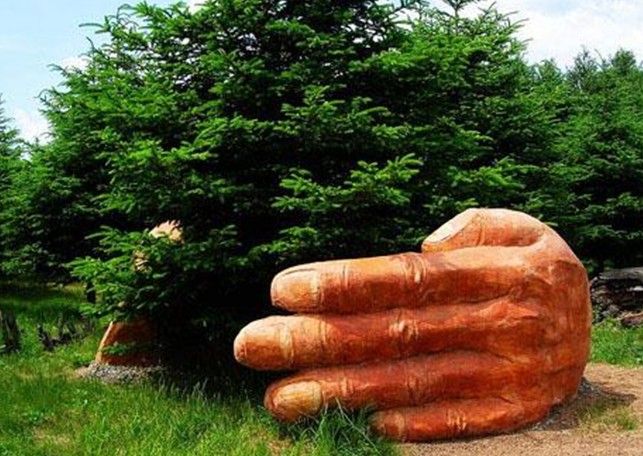 景區(qū)以寓意的手法,展示著荒涼的沙漠、干枯的老井、破舊的車輪、動物的尸骨以及一雙大手環(huán)抱著的一棵幼苗,與周圍表達生命永恒的主題形成強烈的反差。這里警示人們,掠奪資源、破壞環(huán)境、過度耗費自然生命帶來的悲慘結(jié)局,版權(quán)所有山東聊城聊之旅國際旅行社有限公司,轉(zhuǎn)載必究!警示人們,珍愛自然、珍愛生命、珍愛生態(tài)就是珍愛我們自己。園林附屬設(shè)施也以貼近自然為基調(diào)。有泥制的木板、木凳、木樁、樹根,足可以假亂真,保持與整體風(fēng)格協(xié)調(diào)一致。
