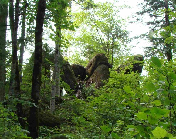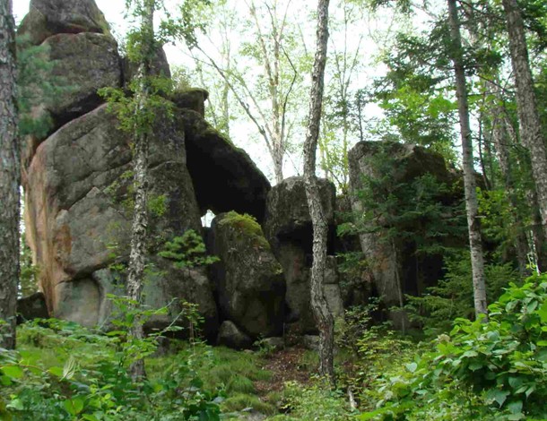 位于距市區(qū)7公里處。在一片密林中,有一簇平地拔地而起,以一塊塊花崗巖巨石砌成的石峰,高大雄偉,其形似柱,稱謂石林。石林由六座石峰組成,南二北四。北面四座一字梯形排列,一高近丈,二高近二丈,三高平二丈,四高一丈半。二峰端長(zhǎng)有蒼松一株,似示最高。各峰成形惟妙,二三座石峰間相距極狹,僅尺許,縫如刀切,稱“一線天”。在第四座石峰南5米處,還有兩座石峰,相距不足1米,微低。遠(yuǎn)望,形如雄師臥地,前身支起而后身匍匐,似忠誠(chéng)的護(hù)林衛(wèi)士。第二叢樹(shù)林,在第一叢以東偏南,相距約百米。由三座石峰構(gòu)成,北二南一。北西兩座甚是匹配,高九仞余,其中一座有三個(gè)峰端,有護(hù)林人“家業(yè)興旺”之寓。沿三峰石南側(cè)攀緣而上,至高6米處,鉆過(guò)兩塊大石堆成的石門,便到了石峰東側(cè)的平臺(tái),臺(tái)成弧狀,可納十余人。臺(tái)下是陡峭絕壁,其險(xiǎn)令人目眩。臺(tái)之對(duì)面,有一塊呈圓鼓狀、低于平臺(tái)1米之大石,可容四人并坐,版權(quán)所有山東聊城聊之旅國(guó)際旅行社有限公司,轉(zhuǎn)載必究!其底部與三峰石相連,有狹道與平臺(tái)相通。登石眺望,可觀得西南方向約20米處的丈余高之石峰,似一擎天巨柱……石林,仿佛小興安嶺建設(shè)者之雄資,在廣袤密林中,手捧奇花異草,伴著山間小溪流水淙淙,迎候著遠(yuǎn)方的客人。