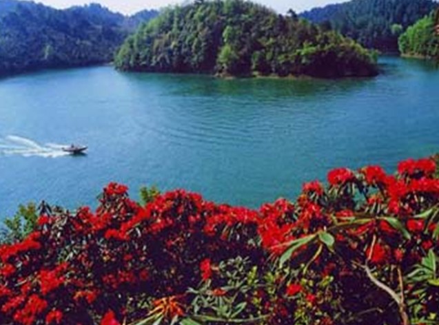 杜鵑湖風景區(qū)位于貴州省長順縣境內(nèi),屬古夜郎國政治中心,與貴陽、安順成金三角之勢,交通便利,東距貴陽102公里,西達安順85公里,與黃果樹、龍宮、紅楓湖等著名景區(qū)共同構成貴州西線旅游環(huán)線。杜鵑湖風景區(qū)以長達7公里的人工湖為主體,四周群山環(huán)抱,湖面煙波浩淼,湖水碧綠如鏡,山頂煙霧繚繞,山下微波拂岸。杜鵑湖的森林覆蓋率近90%,生長著原生態(tài)的常綠杜鵑花。每年2至5月,杜鵑花漫山遍野地繞湖綻放,5至7月,楊梅喜獲豐收,7至9月,滿山的野毛栗,各種香菌、眾多的候鳥布滿湖的周圍。