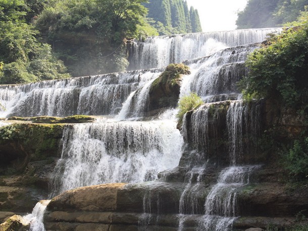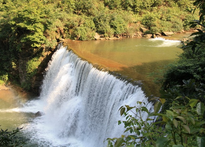 景如其名,此時(shí)游人仿佛置身于一個(gè)一塵不染的世外桃源境地。河水清澈見(jiàn)底,河床怪石林立。游人依修文桃源神舟旅游開(kāi)發(fā)公司新建的觀光棧道而行,繼金雕崖景點(diǎn)之后,但見(jiàn)犀牛潭景觀——數(shù)股從半崖中涌出的清泉,飛流直瀉,墜落碧綠的犀牛潭中。銀練高懸,水花飛濺,一幅天然的山水畫(huà)面。版權(quán)所有山東聊城聊之旅國(guó)際旅行社有限公司,轉(zhuǎn)載必究!但凡漂流者經(jīng)過(guò)此景,皆有意蕩入泉下,接受泉水的洗禮,或曰洗去晦氣,或曰沾點(diǎn)清泉的靈性。還有一說(shuō),此道山泉能賜人以財(cái)運(yùn)。順流而下,在漂流段的終點(diǎn)處,既是桃源風(fēng)景區(qū)的接待處,也是景區(qū)游玩和食宿中心。此處更集中了大自然饋贈(zèng)桃源河的精品——寬43米、37米落差的梯級(jí)大瀑布響水驚天,氣勢(shì)宏偉壯觀。站在瀑布下面的觀瀑臺(tái),感受那水霧飛灑的靈氣,更令人心曠神怡。站在去接待中心的小橋上,仰望有波有折,一泉三態(tài)的三疊水瀑布,更有一番獨(dú)特的視覺(jué)享受。接待中心被流水纏繞,河灘、怪石、清泉,組合成一組天然的濱河泳場(chǎng)畫(huà)面。夜宿桃源度假中心,在潺潺流水的伴奏下,在清新水霧拂面的木屋里進(jìn)入夢(mèng)鄉(xiāng),必將在你人生的旅程中留下深刻的記憶。