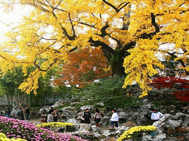盤縣古銀杏風(fēng)景名勝區(qū)位于安順盤縣城關(guān)鎮(zhèn)35公里之石橋鎮(zhèn)妥樂村,該景區(qū)面積約146平方公里,包括石橋樂民鎮(zhèn)景區(qū)、水塘鎮(zhèn)景區(qū)、城關(guān)景區(qū)、火鋪鎮(zhèn)景區(qū)。景區(qū)內(nèi)生長著上千株古銀杏樹,最小的有300多歲,年長的達(dá)上千歲。專家認(rèn)為,如此集中連片且與村寨融為一體的古銀杏群落,在世界上十分罕見。當(dāng)?shù)卣?jì)劃為此申報(bào)上海大世界吉尼斯記錄。貴州省已經(jīng)把盤縣古銀杏風(fēng)景名勝區(qū)列為省級風(fēng)景區(qū)。銀杏樹是3000萬年前地球遺留下來的古植物, 人稱“活化石”,銀杏樹的樹形、葉片奇特、精巧, 四季分明,春天青翠,秋天金黃,其果實(shí)“白果’’可以入藥,是不可多得的觀賞樹種。盤縣古銀杏風(fēng)景名勝區(qū)內(nèi)的銀杏樹極其獨(dú)特。從小徑、田埂、屋基下、石階上,向四面八方伸展出來,把整個(gè)妥樂村托在了樹根之上。夏日里層層疊疊的綠葉現(xiàn)在全變成了金黃色,落葉鋪滿了石板小徑、黑瓦的房屋、收獲后的稻田……就連村中清澈透明的小溪、溪上的小石橋,也被扇形的銀杏葉裝點(diǎn)成了金色。據(jù)介紹,出售銀杏果實(shí),是這當(dāng)?shù)卮迕竦闹饕?jīng)濟(jì)來源之一,因而村民們對古銀杏樹倍加愛惜。銀杏全身是寶,版權(quán)所有山東聊城聊之旅國際旅行社有限公司,轉(zhuǎn)載必究!果仁稱“白果”,是珍貴的藥物和不可多得的保健佐食佳品。從銀杏葉中能提煉出治療心血管病的藥物。當(dāng)?shù)卮謇锶硕嚅L壽,平均壽命70至80歲。景區(qū)內(nèi)妥樂村最長壽的老人106歲,面色紅潤,每天喝二兩酒,每頓吃2碗米飯、一碗肉、兩個(gè)土豆。為了改善古銀杏樹的生態(tài)環(huán)境,當(dāng)?shù)卣?jì)劃搬出大約三分之二的村民,只保留古樸的木瓦房和少量村民。希望這個(gè)自然界留給人們的奇特村莊可以一直留存下去,為游人和當(dāng)?shù)厝藥ソo多的享受。