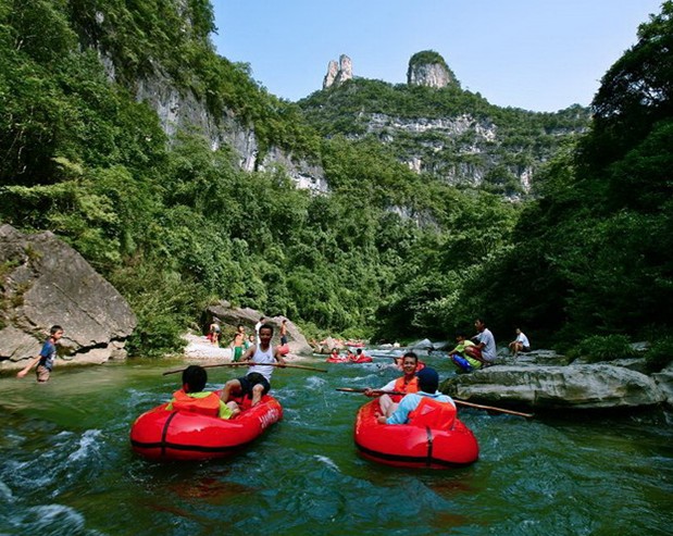 杉木河在貴州省黔東南自治州施秉縣的崇山峻嶺中,流淌了億萬斯年,卻一直名不見經(jīng)傳。若論流量,這條河常年充其量不過4.2立方米/秒,與大江大河的大開大闔、波瀾壯闊簡(jiǎn)直無法相比。經(jīng)過開發(fā),杉木河自助漂流成為生態(tài)環(huán)境游的熱點(diǎn),還因其柔美被稱為“親情河,友情河,愛情河”,其因水質(zhì)清純、有驚無險(xiǎn)自助漂而被譽(yù)為“礦泉河”。