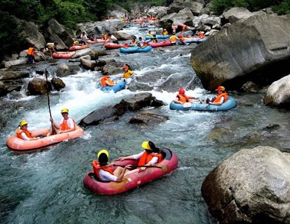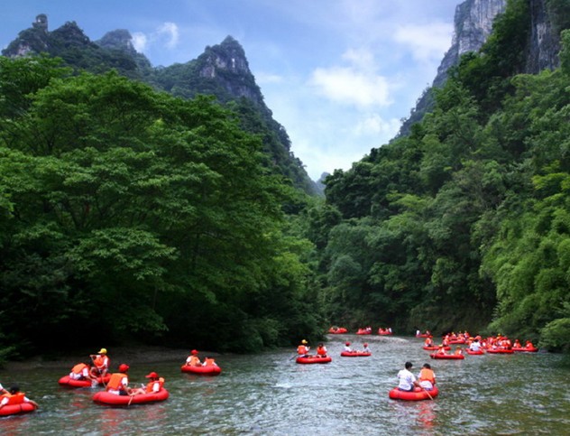 杉木河兩岸,山巖形狀多樣。在杉木河峽谷中漂流的人們便來了擬物象形的興致,每每見到凌空而架、造型獨(dú)特的一個(gè)天然石拱,學(xué)生物學(xué)的叫它“尺蠖洞”,好老莊的叫它“迎仙洞”,搞地質(zhì)研究的叫它“天生橋”;見到崖畔上陡大的石柱,有航海經(jīng)歷的稱其為“林海燈塔”,學(xué)歷史的稱其為“烽臺(tái)”??傊恳痪爸露家齺砬О阏f道,樂山樂水,見仁見智,真?zhèn)€是莫衷一是。杉木河床為卵石細(xì)沙鋪地,流水晶洼碧透,順著寬綽的河道款款流淌。沿途云飄山際,鷺?biāo)奚持?,魚翔淺底,蟬鳴林梢,奇草溢芳,整個(gè)環(huán)境幽而不險(xiǎn),郁而不閉。倘若有七八十歲的老翁老嫗乘上橡皮舟,只要有船工撐篙定可安然漂流而下;而逞能的姑娘在過灘時(shí)如被飛濺的浪花嚇得掉入水中,即刻就會(huì)有健壯的手臂向她揮來——當(dāng)然這并不排除同舟的小伙子惡作劇,創(chuàng)造“英雄救美”機(jī)會(huì)的可能。其實(shí)遇到此種情形即使落下河喝上幾口水也井非壞事,當(dāng)自己掙扎著站穩(wěn)腳跟就會(huì)發(fā)現(xiàn)河水正泠泠地從大腿間流過,瞧那水要多清有多清要多純凈有多純凈,絕無任何污染。版權(quán)所有山東聊城聊之旅國際旅行社有限公司,轉(zhuǎn)載必究!何況還會(huì)從虛驚中多了一分體驗(yàn)一分得意,難怪一位游客要戲稱“不到浪中翻個(gè)滾,哪知杉水是甜泉”。誰要有興趣就停船登岸,到山中采來竹筍,下水中捕捉魚蝦螃蟹,搭起帳篷點(diǎn)燃篝火,入夜后伴以流水蛙鳴,舉杯同邀倩風(fēng)明月,享大自然寬厚、質(zhì)樸、醇美的恩賜。這對(duì)于飽受城市喧囂和環(huán)境污染之苦的人來說,簡(jiǎn)直是一方勝境。在2009年由《行游天下》雜志社、搜狐旅游、中國旅游胡同社區(qū)等媒體聯(lián)合推出的“中國最美旅游勝地排行榜”評(píng)選活動(dòng)中,杉木河漂流入選中國最驚險(xiǎn)刺激的六大漂流勝地。