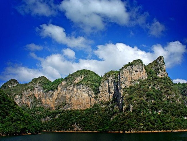 下舞陽河景區(qū)系舞陽河區(qū)十風(fēng)景名勝大景區(qū)之一,位于鎮(zhèn)遠(yuǎn)縣與施秉縣之間,規(guī)劃面積 121 平方公里,景點 33 處。景區(qū)以高峽平湖、瀑泉飛流為主體,山色水韻風(fēng)光迷人。"破鏡重圓"半含水中半露崢嶸奇妙的三疊水珠落玉盤直瀉深潭;鴛鴦戲水,情深意濃;呼大令喊泉神靈有喊必應(yīng),之水出止呼水隱;山峰神態(tài)似"孔雀開屏",形態(tài)逼真;" 圣師徒"前往探幽 … …