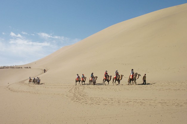 巴里坤鳴沙山位于新疆巴里坤哈薩克自治縣境內(nèi),西距縣城60公里,四周被豐美碧綠的草場(chǎng)所包圍,猶如湛藍(lán)大海中的一座金色小島。鳴沙山形似一朵蘑菇,高約百米,沙丘陡峭,其下有水泉,左右兩側(cè)有河流通過。版權(quán)所有山東聊城聊之旅國際旅行社有限公司,轉(zhuǎn)載必究!據(jù)說這里是唐代女將樊梨花西征遇難的地方,聽到的沙鳴,就是女兵們當(dāng)時(shí)擂鼓助陣和沖殺鼓掌之聲。
