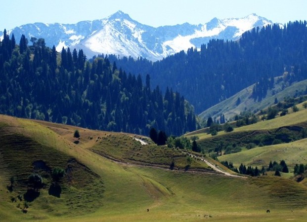松樹塘南距新疆哈密市73千米。 松樹塘位于天山北麓,地跨哈密、巴里坤和伊吾的交界處,海拔1 800-3 000米,年平均氣溫在-0.4℃,經(jīng)常出現(xiàn)6月落雪、8月降霜的現(xiàn)象,是以馱為主,馱挽、馱乘兼用的軍用馬新品種——伊吾馬的產(chǎn)地。松樹塘南依巴里坤山,北臨綠草如茵的巴里坤大草原,在洪積扇緩坡和山腰、谷地間松杉蔥郁,森林滿坡,云杉樹一直延展到平野上。