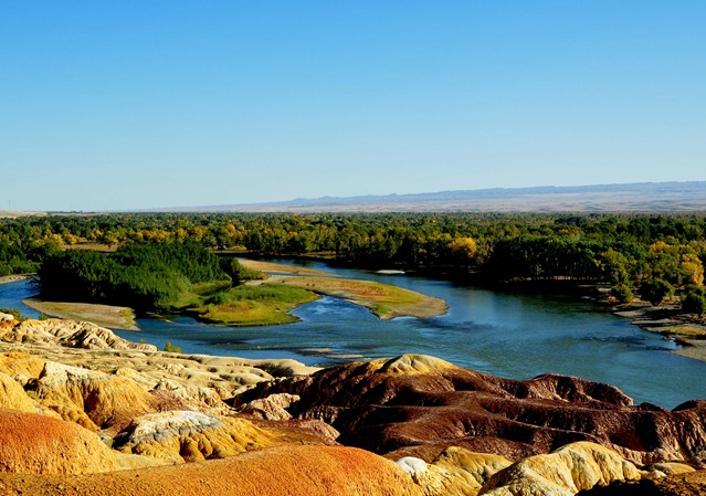 五彩灘一河兩岸,南北各異,是國家4A級景區(qū)。五彩灘又稱五彩河岸,位于額爾齊斯河流域,由于長期受風蝕水蝕以及淋溶等自然作用的影響而形成的,屬于典型的雅丹地貌,“雅丹”是地理學名詞,維吾爾語“險峻得土丘”之意。其南邊是我國唯一向西流入哈薩克斯坦--俄羅斯--北冰洋的額爾齊斯河,僅次于伊犁河的新疆第二大河。