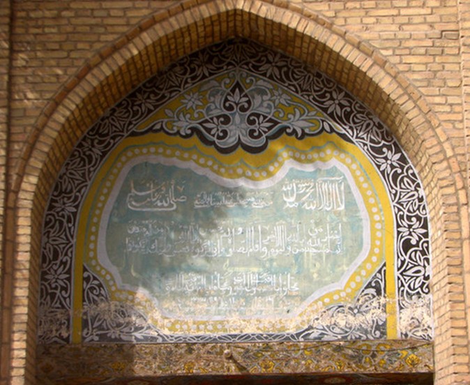 默拉納額什丁墓在庫(kù)車新老城之間。默拉納是圣人后商的意思。額什丁相傳為伊斯蘭教之始祖,在宋理宗時(shí)來(lái)庫(kù)車傳布伊斯蘭教,死后葬此。建有祠宇、分祠門、祠堂、墓門和墓室四部門、全部以綠色琉磚裝飾,是曲型的伊斯蘭教建筑,頗為壯麗。祠西廊下有匾額,上書 “天方列圣”四個(gè)大字。