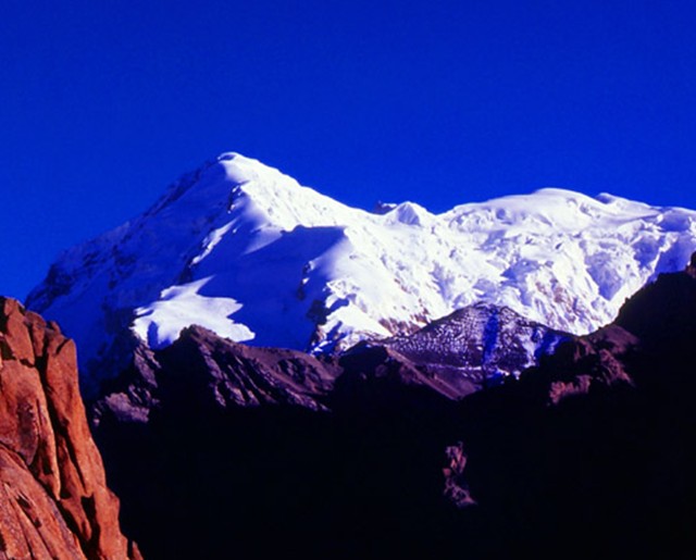 托木爾峰位于阿克蘇地區(qū)溫宿縣境內(nèi)的中國(guó)與吉爾吉斯斯坦國(guó)境線附近,屬天山山脈中天山區(qū)。海撥7435.3米。“托木爾”,維吾爾語(yǔ)意為“鐵”。其主峰及周?chē)?0萬(wàn)公頃山地于1980年被列為自治區(qū)級(jí)自然保護(hù)區(qū),主要保護(hù)高山冰川及下部森林,生物群落及生態(tài)環(huán)境。