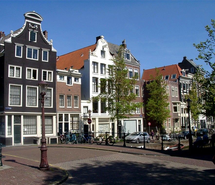 阿姆斯特丹顯得古老而極有味道。所有三層和四層的小樓房被藍(lán)色、綠色和紅色精心地裝飾著,可愛得就象假的一般。這些玩具一般的樓房的門,是那么的狹小,僅能容得一個人走進(jìn)。古時此地有一條奇怪的法律,門越大交納的稅就越多,無奈的人們只好將門盡量做小,卻把窗戶做得很大,家具什么的都從窗口吊運(yùn)進(jìn)出。所有小樓房的頂部,都有數(shù)個伸出來的鐵鉤子,以固定吊運(yùn)物品所用的繩索。