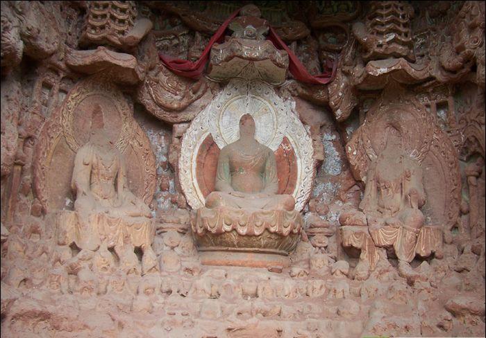 中巖各寺廟及佛像很多建于唐代。但景區(qū)中的佛像大多被毀壞,特別是眾多佛像都沒有頭,這也是中巖的一大景像。
