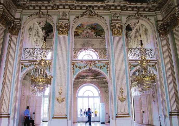 從1701年開始,巴伐利亞公國的繼承人Max Emanuel對宮殿進行了有系統(tǒng)的擴建。導(dǎo)游對古堡建筑的一句介紹,讓我馬上感受到這座老宅的莊嚴(yán),或者說森嚴(yán)。“你們看!”他指著面向游客的一幢石砌的樓說,“從下到上,每一層樓的窗戶的大小都不一樣。一樓(并非緊接著地的底樓,需上臺階才能到達)是古堡主人———侯爵夫婦的臥室,窗戶是最大的;二樓是他們小孩的臥室,窗戶比一樓??;三樓是家庭教師的住所,窗戶更小;最小的窗戶則是仆人的房間,在頂樓。”