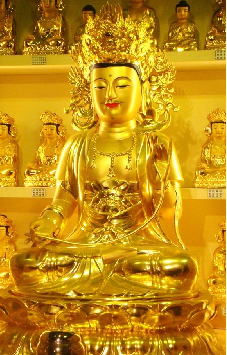 海印寺位于韓國慶尚南道陜川郡伽耶山,亦名牛頭山,是新羅時期高僧義湘大師的弟子順應和理貞二位法師,為弘揚華嚴宗而于公元802年創(chuàng)建的道場。 華嚴宗的根本經(jīng)典是《華嚴經(jīng)》。在《華嚴經(jīng)》“賢首菩薩品”中有“海印三昧”之名。海印三昧又叫海印定、海印三摩地、大海印三昧。華嚴宗以此三昧為華嚴大經(jīng)所依之總定。佛說法前,必先入定思惟法義,以及審查根機。如說《法華》時,入無量義處三昧;說《般若》時,入等持王三昧;說《涅盤》時,入不動三昧。華嚴經(jīng)七處八會中,每一會均有別定,即第一會入如來藏三昧,乃至第八會入師子奮迅三昧。海印三昧即此七處八會所依之總定。海印者,約喻以立名,即以大海風止波靜水澄清時,天際萬象巨細無不印現(xiàn)海面,譬喻佛陀之心中,識浪不生,湛然澄清,至明至靜,森羅萬象一時印現(xiàn),三世一切之法皆悉炳然俱現(xiàn)。華嚴大經(jīng)即依此定中所印現(xiàn)之萬有而如是說。海印寺之名即取意于此。