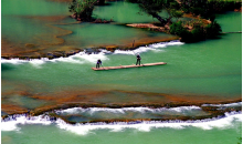 羅平多依河位于羅平縣城東南40公里,經(jīng)十萬(wàn)大山峰叢至多依寨子進(jìn)入景區(qū)。景區(qū)從多依寨至“雞嗚三省”的三江口,全長(zhǎng)12公里的河床上有近40個(gè)瀑布,兩岸古木修竹,色彩豐富,層次清晰。河水常年晶瑩剔透,蔚藍(lán)無(wú)邊。尤其是沿河兩岸盤根錯(cuò)節(jié)的干年古樹(shù),仿佛就是一座龐大的自然根雕藝術(shù)展覽館。河道蜿蜒曲折,布依村寨沿河而布,吊腳樓隱現(xiàn)樹(shù)叢竹林之間,一派十足的熱帶風(fēng)光畫面。一水合三江、清江一邊淌、渾水一邊流的奇觀異景就在此顯現(xiàn)。