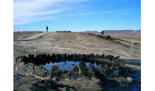 黑油山位于克拉瑪依東北部,距市中心兩公里多,是油田重要油苗露頭的地方,因原油長年外溢結(jié)成一群瀝青丘,最大的一個高13米,面積0.2平方公里,油質(zhì)為珍貴低凝油。"克拉瑪依” 維吾爾語為“黑油”,故這個天然石油瀝青丘且得名黑油山。這座黑色的瀝青山以及它地下埋藏的石油在這里已沉睡上億年。由于地殼變動,巖石產(chǎn)生斷裂破碎,地下石油受地層壓力影響,巖石裂隙不斷向地表滲出。