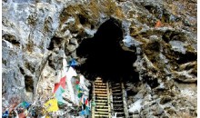 金嘎溶洞,是一個(gè)自然形成的溶洞,位于西藏日喀則江孜縣金嘎鄉(xiāng)。此溶洞以其神奇?zhèn)髡f與充滿佛教氣息著稱。如同一堆鋒利的兵器,整個(gè)形態(tài)象度母靜坐。洞口寬約8米,高近2米,洞深40余米,自上而下有自然形成的蓮花生大師、南木朗?多吉堆窘大譯師等六個(gè)修行洞,及自然形成的形態(tài)逼真的米拉日巴、十六羅漢、大象、蝎子、天龍、地蛇、月亮、太陽等80余種畫面。