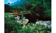 神農(nóng)溪,發(fā)源于神農(nóng)架主峰,流經(jīng)湖北巴東縣境內(nèi),由北向南穿行于深山峽谷之中,至巫峽口東匯入長江。神農(nóng)溪是一條典型的峽谷溪流,兩岸山峰緊束,絕壁峭聳,溪水在刀削般的峽壁間沖撞,水道曲折,湍急的溪流中有險灘、長灘、彎灘、淺灘六十余處。水道雖狹急卻清淺,漂流極富刺激而又安全。