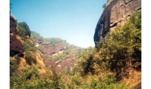 虎嘯龍川大峽谷坐落在武夷山自然保護(hù)區(qū)內(nèi),這里峰巒疊翠,繁花掩映,珍禽異獸,疊泉流瀑。諸多景致為一體,耳聞鳥(niǎo)鳴泉吟,目染峻山清澗。從跨入景區(qū)起,就進(jìn)入了盆景和瀑布的世界。古木參天,藤蘿盤繞,集千年的靈氣而形神兼俱,美輪美奐的瀑布順著怪石嶙峋的山體銀鏈垂空,飛花濺玉,在陽(yáng)光的照射下襯著丹霞的山體折射出迷人的七彩光暈,美不勝收,宛如仙境。