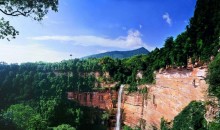開陽南江大峽谷,距貴陽市六十余公里,以氣勢宏大的喀斯特峽谷風(fēng)光和類型多樣、姿態(tài)萬千的瀑布群落為特色,是美學(xué)價(jià)值和科學(xué)價(jià)值都很高的風(fēng)景區(qū)。峽谷全長四十多公里,最深處達(dá)三百九十八米,經(jīng)科學(xué)考察結(jié)果顯示:南江峽谷地層古老,河谷深切,為典型的低中山峽谷地貌景觀,十分壯麗優(yōu)美。峽谷內(nèi)有自然景觀八十余處,各種姿態(tài)瀑布四十多條,最高落差達(dá)二百五十余米。