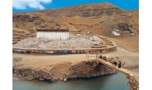 嘎東寺位于日喀則白朗縣年楚河以北16公里嘎東鎮(zhèn)境內(nèi)。嘎東寺歷經(jīng)寧瑪派、噶舉派、薩迦派,到十七世紀(jì)中葉開始盛行格魯派。寺中珍藏有舉世罕見的寶物,即該寺第四任堪布桑布?xì)J布的兩條徑骨和空行母絲薩曲珍的頭顱。在桑布?xì)J布右徑骨上端的骨縫四周天然生成著微小的釋迦牟尼、觀音菩薩、無(wú)量光佛、護(hù)法神、度母五尊佛像;左脛上端天然生成著微小的釋迦牟尼佛像和4個(gè)白色舍利;在度母化身空行母絲薩曲珍的頭顱上天然生成著三個(gè)藏文字母和度母像。原嘎東寺已被毀壞,1985年在原址上重新修建了嘎東寺。