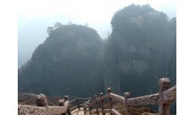 茶洞又名玉華洞,升仙洞,位于六曲的東面。據(jù)說是因為此洞里產(chǎn)茶“甲于武夷”,故名。今洞里依然還有一片歷經(jīng)滄桑的古茶樹。其實,茶洞之奇,并不在于茶,而在于它的“崢嶸深鎖”的意境。從伏虎巖前的石徑登上,內(nèi)有一道石門,門額上刻有“崢嶸深鎖”四個字。入石門穿過石洞,眼前豁然開朗,別有洞天。從洞中可放眼望接筍峰、隱屏峰、玉華峰、清隱巖、天游峰、仙掌峰,以及遠在三曲的仙游巖。峭壁聳立的危崖,就像一堵堵高大的城墻,把它團團圍住,唯一的通路,就是西邊的一條巖罅。 人在面積不過六、七畝的洞中,有如陷入井底一樣,抬頭仰視,僅見青天一圍。