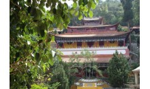 梨花塢又名大梨園,塢中建有同名寺院,主建筑慈云閣層樓高聳,飛檐翼然,古樸莊嚴(yán),為大慈大悲觀世音菩薩安享人間香火之所;附屬建筑藏經(jīng)樓、讀畫樓、醉月樓、菩提樓、養(yǎng)云池、雨花亭、瑞雪嶺等亭臺(tái)樓閣皆依山構(gòu)筑,錯(cuò)落有致而又此呼彼應(yīng)地構(gòu)成一個(gè)嚴(yán)整的建筑群體。寺前一彎山溪如吟似奏