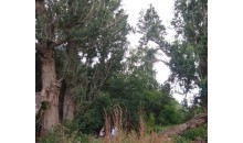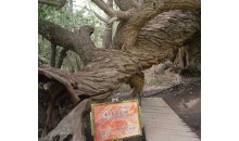 阿克蘇向北,過溫宿縣城后,再向西北行60公里,穿越一大片戈壁灘,一個(gè)崗巒起伏的小綠洲便展現(xiàn)面前。這個(gè)小綠洲,不是處在地勢(shì)低洼處,而是位于坡度平緩的崗阜上,海拔為1700米左右,面積僅0.4平方公里,但卻是郁郁蔥蔥,濃蔭覆蓋,流水潺潺,蜂飛蝶舞,堪稱人間仙景。當(dāng)?shù)胤Q它為“怪樹園”。被稱之為“圣水泉”的一汪清泉在綠洲頂部,涓涓細(xì)流,滋潤(rùn)著這塊綠洲。