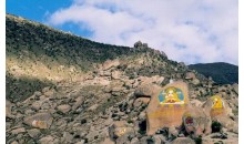 藏王墓屬全國重點文物保護單位,位于山南窮結(jié)縣宗山的西南方,背靠丕惹山(意為增長之山),是吐蕃王朝時期第29代贊普至第40代(末代)贊普、大臣及王妃的墓葬群,總面積385平方米。各陵墓封土高大,為土壘成的高臺丘墓。其上層土墩為橢圓形,墩頂極平坦,東西長約130米;下層為長方形土臺,周邊不齊整。藏王墓的數(shù)目現(xiàn)難確定,能看到的有八九座。