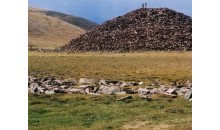 烏孫古墓又稱作烏孫土墩墓或草原土墩墓。據(jù)1988年新疆伊犁地區(qū)文物普查結(jié)果表明,在新疆伊犁州廣闊的草原上分布著萬(wàn)座土墩墓??脊殴ぷ髡咴诰蛞坏撞恐荛L(zhǎng)200米,墓高10多米的大墓,估計(jì)封土堆的體積達(dá)一萬(wàn)多立方米,需動(dòng)用3萬(wàn)人工,封堆中部的長(zhǎng)方形墓室體積近100立方米,用木材近50立方米。不妨設(shè)想,將這一萬(wàn)座土堆墓一個(gè)一個(gè)排列起來(lái),將連接1千余公里,是一座多么浩大壯觀的人類建筑。