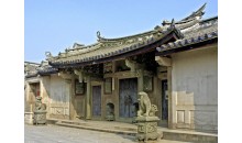 琳瑯滿目的建筑裝飾,使整座建筑物顯得更加富麗堂皇,首進(jìn)門樓前理分置精致石獅一對,門樓屋架為雙面鏤空石雕。而最令人嘆為觀止的還是鑲嵌于門樓石壁上的四幅石雕.這四幅石雕分別以土農(nóng)工商,漁樵耕讀,花鳥蟲魚為題材,每幅石刻都很好地運(yùn)用了“之”字形的構(gòu)圖,將不同時空的人、事、物集中在同一畫面,濃縮故事情有節(jié)。表現(xiàn)最富戲劇性的瞬間。