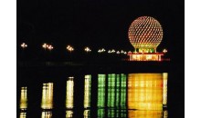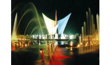 位于煙臺經(jīng)濟技術(shù)開發(fā)區(qū)金沙灘海濱公園正門處,為一圓形階梯狀構(gòu)筑,整個廣場噴泉灑珠,青草滴翠,花紅樹綠,烏囀鶯啼,使人仿佛置身天上的街市,神奇無比。北部最高點矗立著一組風帆群雕,在碧海藍天間顯現(xiàn)出勃勃生機,象征著開發(fā)區(qū)在改革開放的大潮中乘風破浪,一帆風順;入夜,這里華燈齊放,燦爛輝煌,風帆通體發(fā)光,昂揚向上,寓意著光輝的前景和時代的精神。
