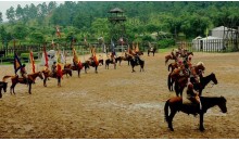 三國馬戰(zhàn)城的三國古戰(zhàn)表演是以三國時期為背景,再現(xiàn)《三國演義》中三英戰(zhàn)呂布的重要場面。 公元190年,18路諸侯為匡復漢室討伐董卓,在虎牢關前展開了一場殊死拼殺。桃園結義的劉備、關羽、張飛三兄弟在迎戰(zhàn)董卓大將呂布時,體現(xiàn)了蓋世英雄的豪邁氣概。