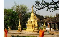 西雙版納景真八角亭位于景洪以西14公里,地處勐??h景真山上,亭子因山而得名,是西雙版納的重要文物之一,建于公元1701年。西雙版納景真八角亭為磚木結構,呈八角形,亭身有31個斜面,鑲嵌彩色玻璃,并用金銀粉印出各種花卉、動物、人物圖案,在陽光的照射下,光彩奪目。