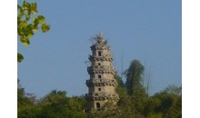 鎮(zhèn)風(fēng)塔在饒平縣拓林鎮(zhèn)東北l千米的風(fēng)吹嶺西麓。困拓林地處海濱,屢遭風(fēng)潮之害,昔人于嶺高面海,常年風(fēng)聲颯颯的風(fēng)口處建塔,取鎮(zhèn)風(fēng)鎮(zhèn)水之意,故名。元至正十三年(1353年)二月建,塔高22米,基圍16米,七層八面,塔身各層用石板鋪蓋,游人可在塔內(nèi)沿螺旋形石階登上各層,塔廊還裝有石欄桿,每層開(kāi)設(shè)圓窗和拱門(mén),可供游人步出塔廊覽觀山勝。