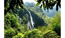 太平山瀑布位于海南通什市東北6公里處的太平山。太平山海拔800多米,山上長滿老樹古藤,巖石疊峰奇秀,山花爛漫,林木蔭翳,曲徑通幽。太平山瀑布奇?zhèn)延^,上細(xì)中粗。雨季,飛瀑傾瀉,落于于丈余巨石上,飛濺起如珠似玉的水花,轟聲如雷,回蕩不息。山下是通什度假村,琉璃紅瓦,環(huán)境優(yōu)雅。