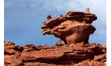 海森楚魯怪石城位于阿拉善右旗努日蓋蘇木境內(nèi),距旗府所在地220公里?!昂I敗睘槊烧Z音譯,意為象鍋一樣的石頭。在方圓二十余公里的地方,大到幾十立方,小到拳頭大小的風(fēng)蝕原石隨處可見, 怪石林立,形態(tài)各異,有象臨空欲飛的碩大雄鷹,有象“蘑菇云”……各式各樣,栩栩如生,與云南石林,黃山怪石相比也并不遜色,使人感到大自然神賜般的無窮魅力。