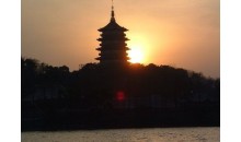 雷峰夕照西湖十景之七,雷峰夕照,位于西湖湖南、凈慈寺前的夕照山上,因晚霞鍍塔,佛光普照而聞名。雷峰塔建于五代(975),是吳越國王錢弘俶為慶祝黃妃得子而建,初名黃妃塔。因建在當(dāng)時的西關(guān)外,故又稱為西關(guān)磚塔。原擬建十三層,后因財力所限,只造了五層。明代嘉靖時,倭寇入侵,疑心塔內(nèi)有伏兵,縱火焚塔,僅存塔心。