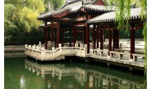 龍?zhí)?,位于?jì)南舊城西門(mén)外,洛源橋北,南臨趵突泉,北接大明湖。潭周名泉眾多,形成五龍?zhí)度海瑸闈?jì)南四大泉群之一,內(nèi)有泉池二十七處。公園的建園風(fēng)格兼具有南北造園之精華,是以潭池溪港等景觀構(gòu)成,質(zhì)樸野逸為特點(diǎn)的園林水景園。此水域風(fēng)景秀麗,柳絲醮波,鳴禽啾啾,荇藻漂浮,錦魚(yú)嬉戲,素有“夾岸桃花,恍若仙境”之美譽(yù),風(fēng)景幽雅獨(dú)具特色