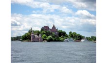北美洲安大略湖的湖水流出注入圣勞倫斯河,在圣勞倫斯河河灣有大小天然島嶼1865個(gè),人工島嶼1個(gè),被稱作千島湖,又叫圣勞倫斯群島國家公園。有人說加拿大把露出水面1平方米且有一棵樹的地方稱為島。湖(河)中心的分界線將千島湖一分為二,南岸是美國的紐約州,北岸則是加拿大的安大略省。2/3島嶼在加拿大境內(nèi),而美國擁有的島嶼大都面積大并有深水水道通往大湖。